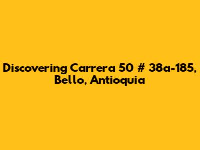 Alright, guys, let's dive into everything you need to know about Carrera 50 # 38a-185, Bello, Antioquia. This spot isn't just an address; it's a place brimming with life, culture, and opportunities. Whether you're planning a visit, looking to move, or just curious about this locale, I’ve got you covered. We'll explore the ins and outs, from its geographical location to the vibrant community that calls it home. So, buckle up, and let's get started on this exciting journey!