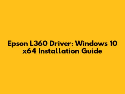 Epson L360 Driver: Windows 10 X64 Installation Guide