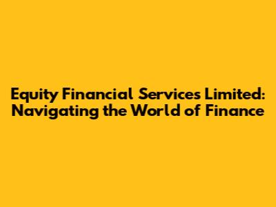 What Exactly Does Equity Financial Services Limited Do?