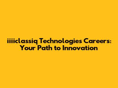 Iiiiclassiq Technologies Careers: Your Path To Innovation