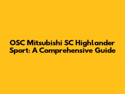 Hey guys! Let's dive deep into the world of the OSC Mitsubishi SC Highlander Sport. This article is your go-to resource for everything related to this awesome vehicle. We'll cover everything from its history and features to common repair issues and maintenance tips. So, buckle up, and let's get started!