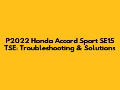 P2022 Honda Accord Sport SE15 TSE: Troubleshooting & Solutions