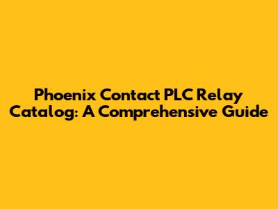 Phoenix Contact PLC Relay Catalog: A Comprehensive Guide