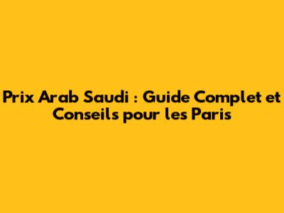Prix Arab Saudi: Guide Complet Et Conseils Pour Les Paris
