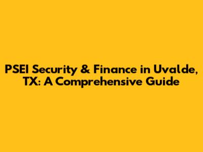 PSEI Security & Finance In Uvalde, TX: A Comprehensive Guide
