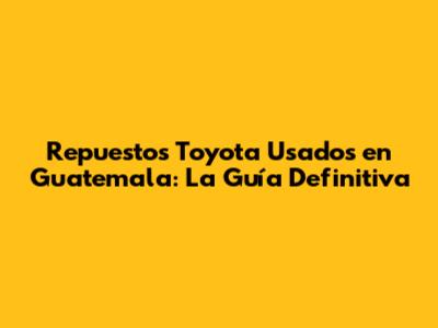 Repuestos Toyota Usados En Guatemala: La Guía Definitiva