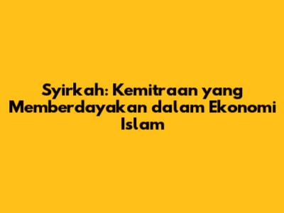 Syirkah: Kemitraan Dalam Sistem Ekonomi Islam