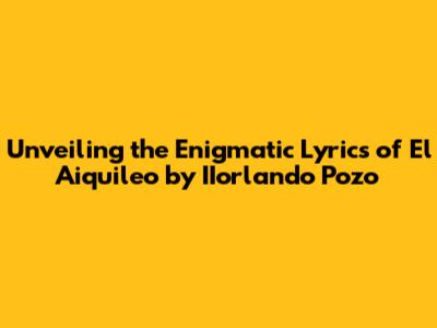 Unlocking The Secrets Of 'El Aiquileo': A Deep Dive Into IIorlando Pozo's Lyrics